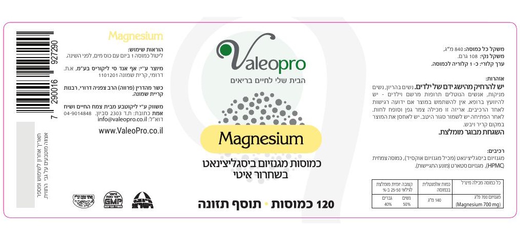מגנזים (as Magnesium Bisglycinate) 700 מ”ג.